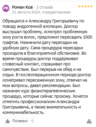Врач по пересадке волос. Заведующий отделением. Дерматовенеролог, трихолог